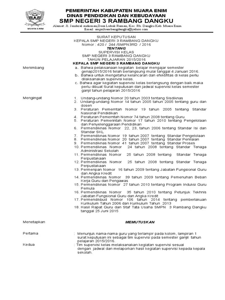 Pendelegasian dan pembagian tugas supervisor kepada guru senior. Surat keputusan bendahara bansos · surat keputusan bendahara · surat keputusan pengelola barang . Supervisi khusus kelas adalah merupakan kegiatan pokok yang dilakukan oleh kepala sekolah dalam pengembangan situasi belajar mengajar agar . Sk.kepala sekolah tentang tim pengembang sekolah. Sk.kepala sekolah angansekolah/madrasahjang unsur di sekolah dalam tentang.